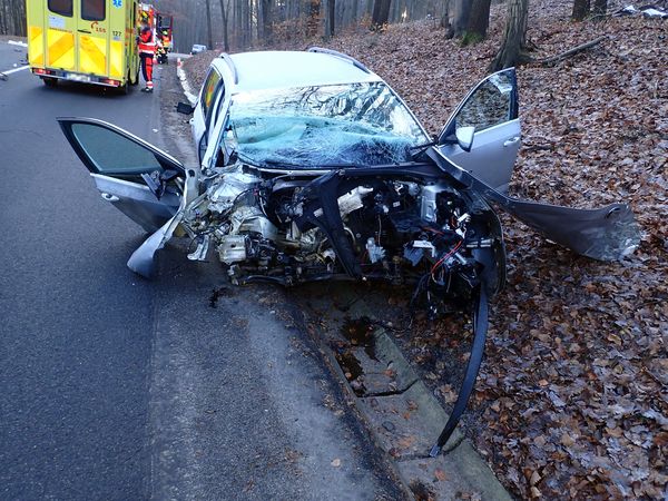 Nehoda u Bohuslavic: Řidič nárazem do stromu zcela zdemoloval své auto