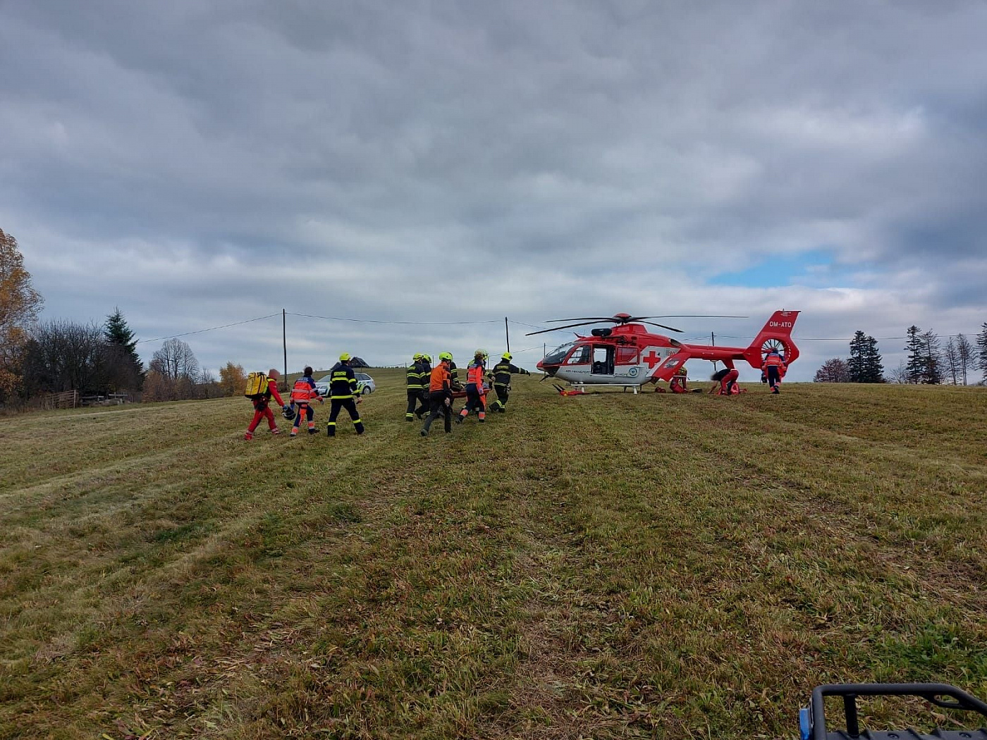 Průzkumem bylo zjištěno, že muž není zavalený. Zraněnému, který prováděl kácení stromů, byla poskytnuta předlékařská pomoc a později byl předán do péče zdravotníků. Následně byl transportován k vrtulníku letecké záchranné služby.