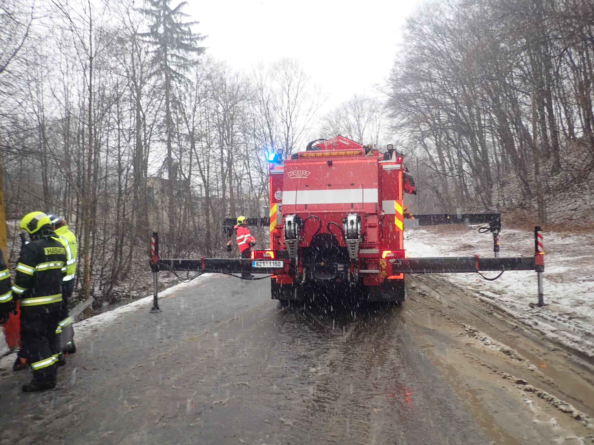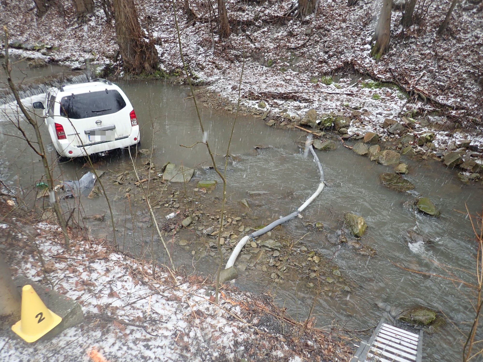 Hasiči do vody dali norné stěny, kdyby při manipulaci s vozidlem došlo k úniku provozních kapalin a odpojili autobaterii. Velitel zásahu si k vytažení vozidla povolal vyprošťovací automobil ze stanice Otrokovice. Pomocí něho poté vozidlo vytáhli z koryta potoku zpět na silnici. Zásah velmi komplikovalo nepříznivé počasí, které trápilo zasahující hasiče. (hzs)