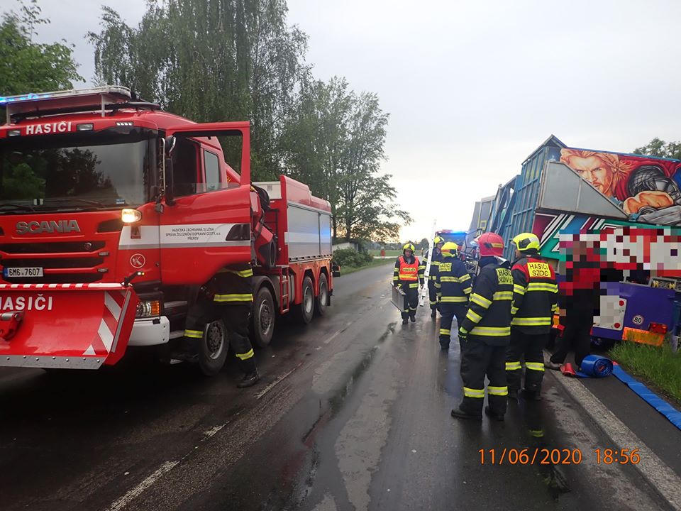 Večerní dopravní nehoda kamionu omezila provoz na železnici u obce Zašová na Vsetínsku. Řidič skončil s vozidlem, převážejícím pouťovou atrakci, v příkopě a bez pomoci nebyl schopen vyjet zpět na komunikaci. Nehoda se obešla bez zranění. Na místo vyjeli hasiči ze stanice Valašské Meziříčí a hasiči města Rožnov pod Radhoštěm. Hasiči u vozidla provedli protipožární opatření. K úniku provozních kapalin nedošlo. Velitel zásahu si na místo nehody přivolal profesionální hasiče ze Správy železniční dopravní cesty Přerov, neboť kamion skončil v těsné blízkosti kolejí. Následně hasiči společně vyprostili havarované vozidlo zpět na cestu.