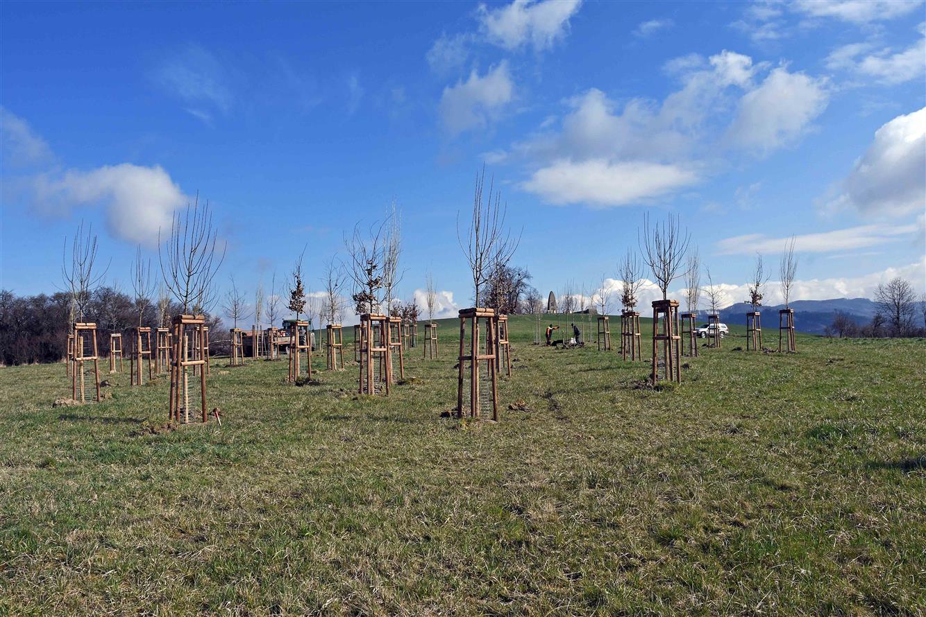 V těsné blízkosti památného vrchu Helštýn dokončuje v těchto dnech městská společnost Městské lesy a zeleň, s. r. o., výsadbu celkem 57 kusů stromů. Tyto společně vytvoří zelenou katedrálu podle návrhu umělce Jiřího Černického, která bude stěžejní součástí unikátní Florální oázy.