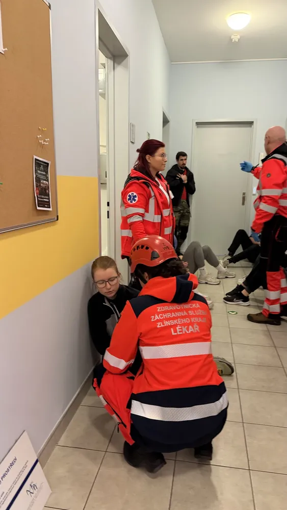 Na terénní výcvik plynule navázalo cvičení traumaplánu Krajské nemocnice T. Bati ve Zlíně, které simulovalo výbuch v uzavřeném prostoru. Zranění figuranti byli postupně transportováni na urgentní příjem, kde nemocniční týmy trénovaly triáž, příjem pacientů a koordinaci mezi jednotlivými odděleními. Právě propojení přednemocniční a nemocniční péče umožnilo otestovat celý systém od prvního zásahu až po převzetí pacienta v nemocnici.