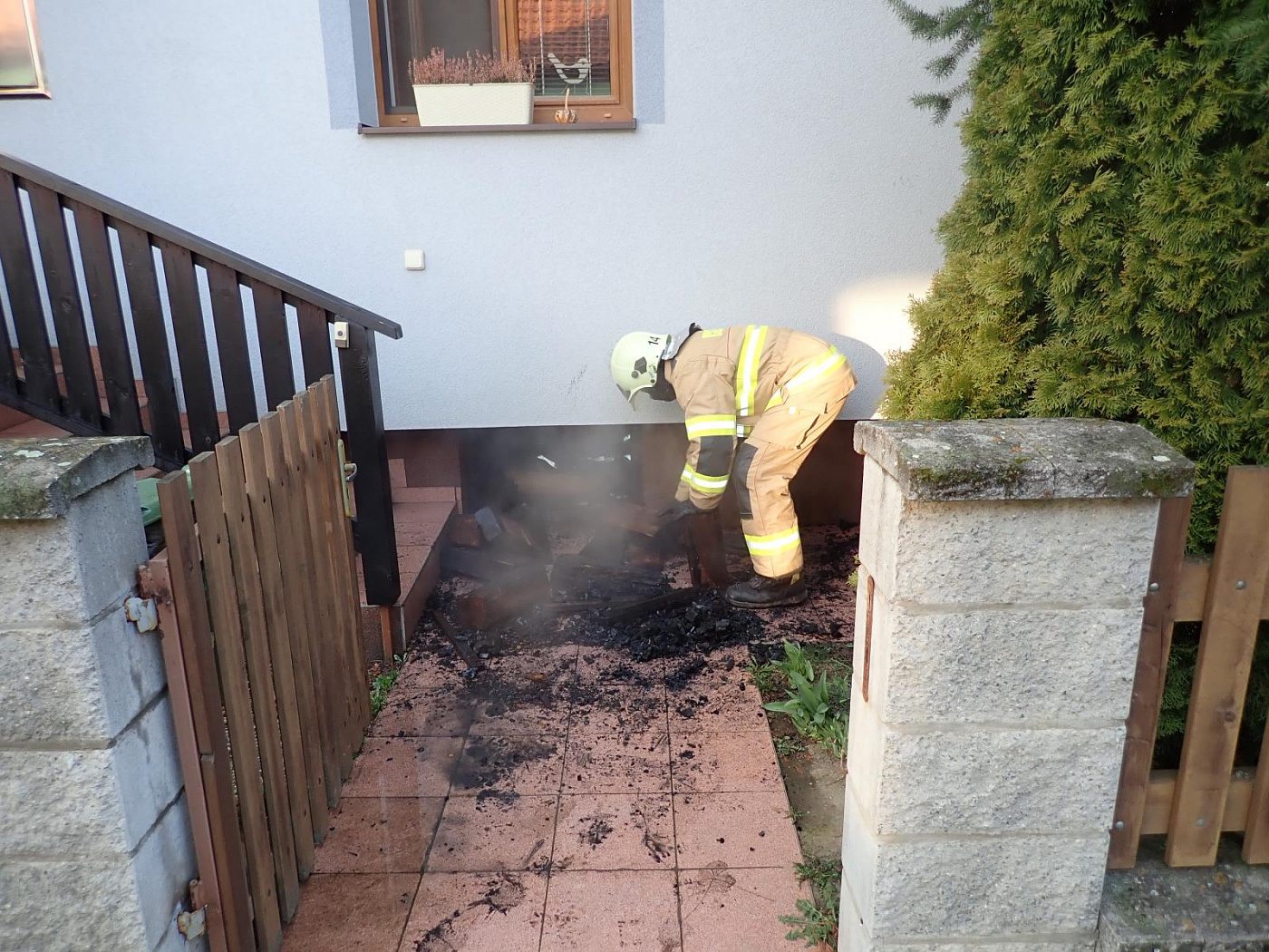 V průběhu zásahu bylo upřesněno, že k požáru došlo v místnosti přiléhající ke kotelně, kde bylo až po strop uskladněno dřevo na topení. Po likvidaci požáru byly prostory přetlakově odvětrány.