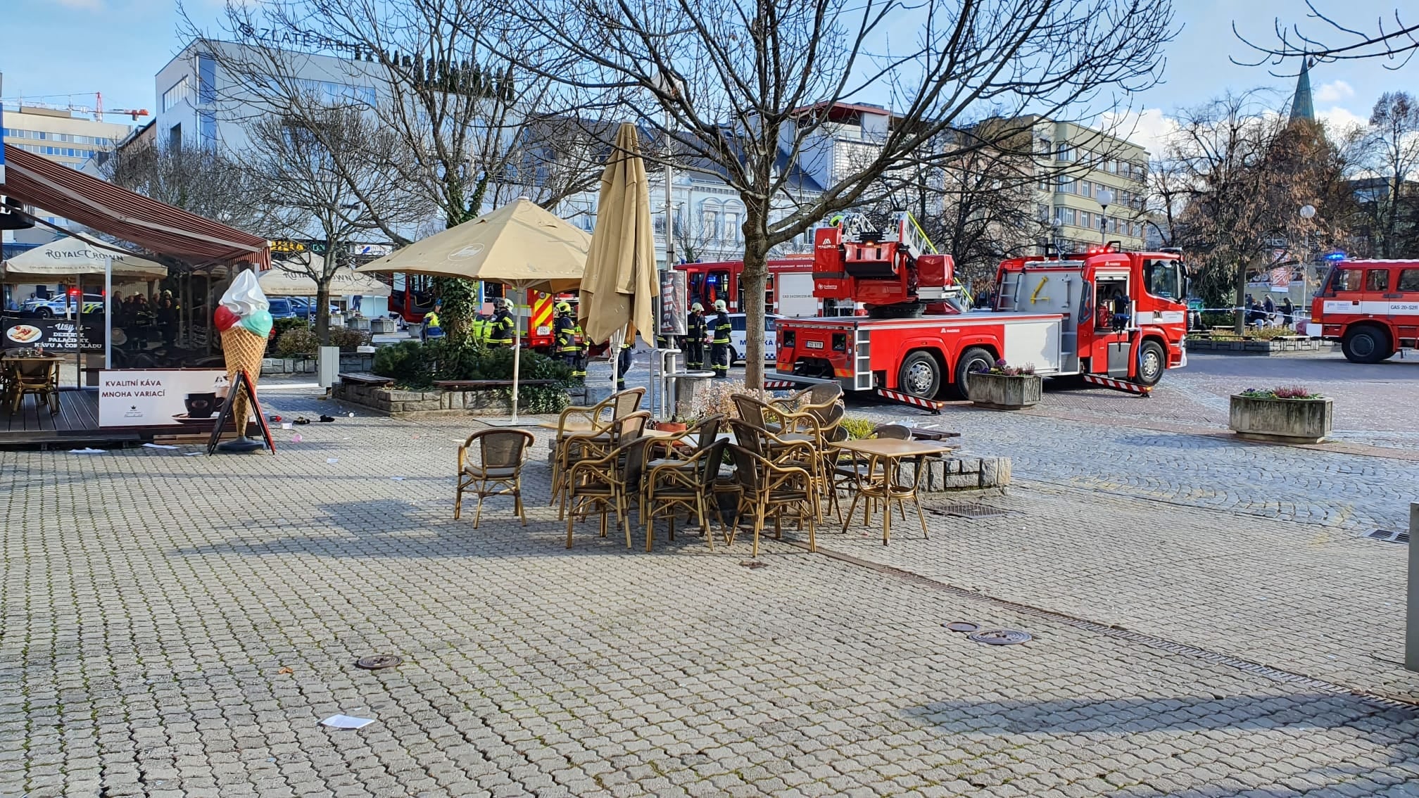 Výbuch, černý dým a letící střepy vyděsily dnes krátce po poledni občany, kteří se v danou chvíli nacházeli na náměstí Míru v centru města Zlína.