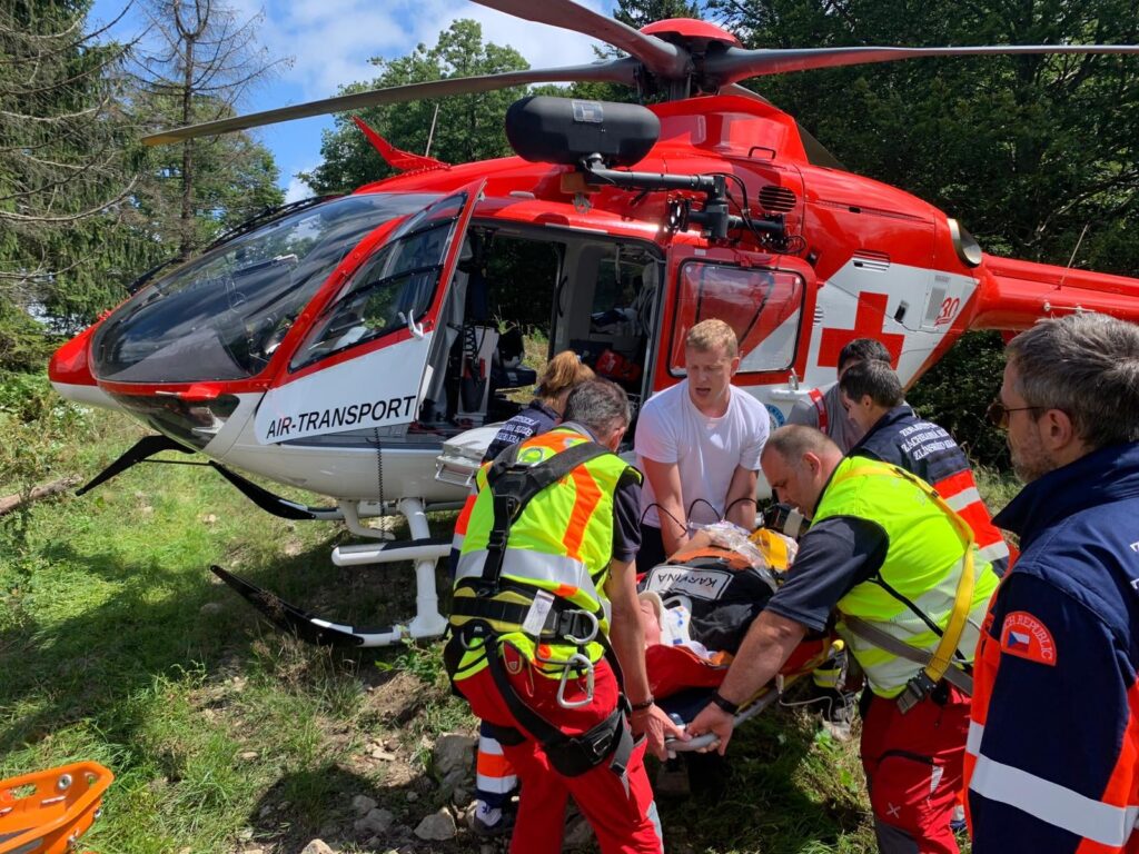 Zásah komplikoval špatně dostupný terén včetně místa přistání pro vrtulník, s čímž si však profesionální pilot poradil a bezpečně přistál nedaleko zraněného.