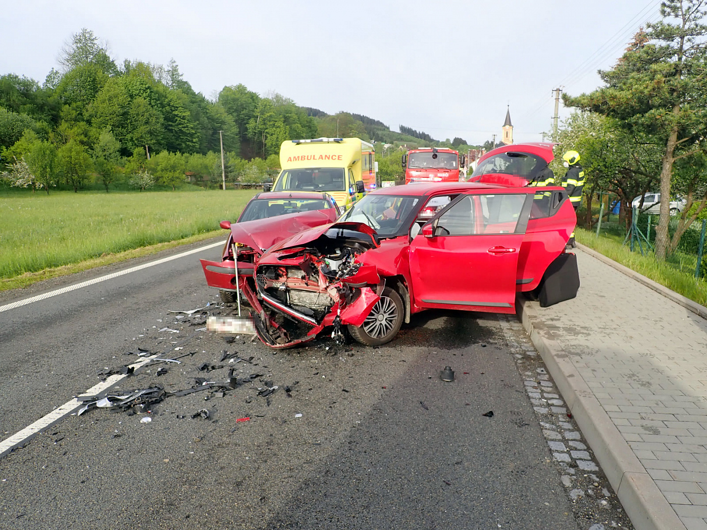 Do obce Huslenky vyjížděli hasiči k nehodě dvou osobních vozidel, jednoho člověka vyprostili