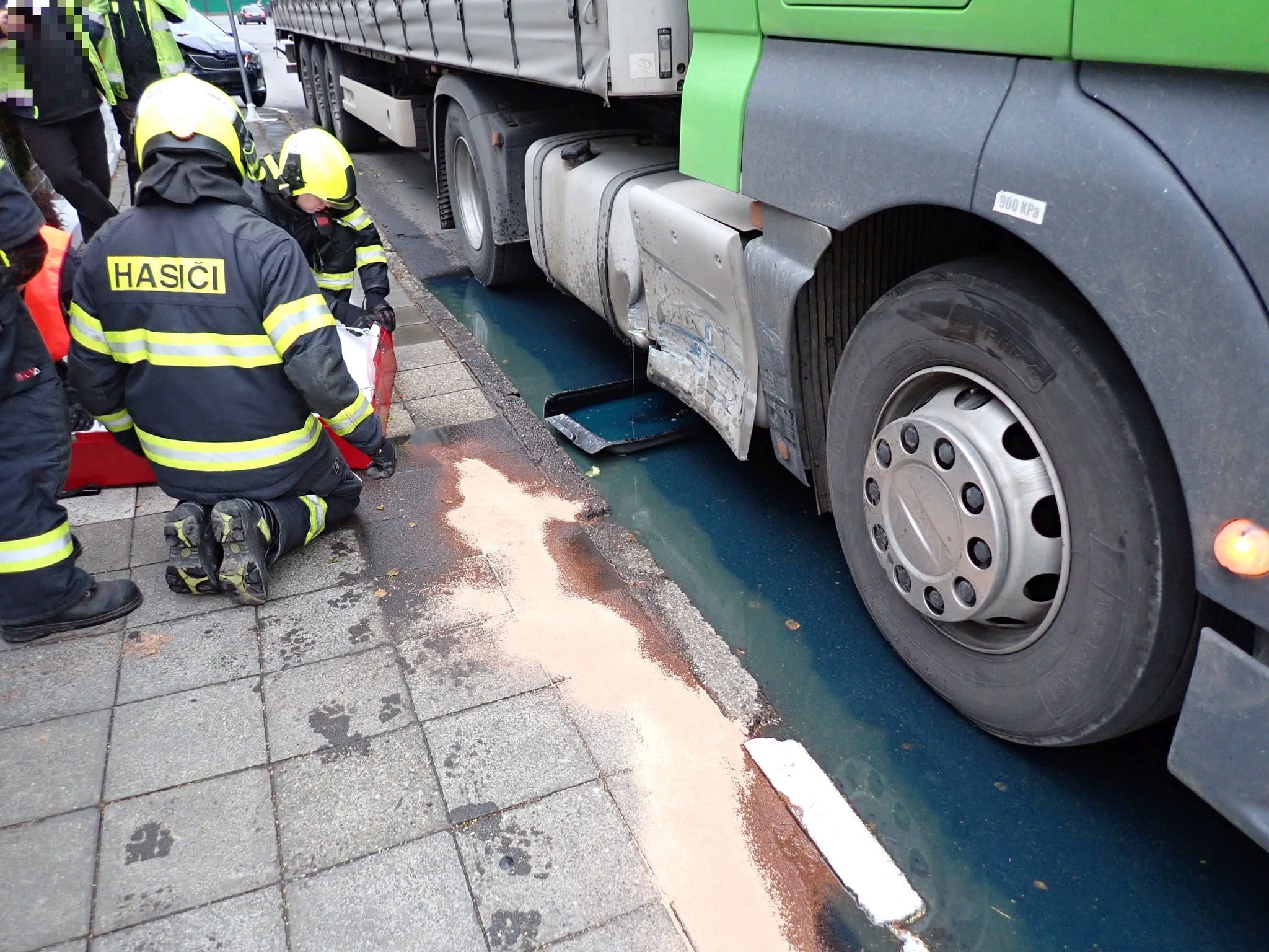 Unikající kapalinu hasiči zachytávali do úkapové vany a zamezili jejímu dalšímu odtékání na silnici. Díky rychlému zásahu se nafta naštěstí nedostala do kanalizace. Kapalinu vyteklou na komunikaci zasypali hasiči sorbentem.