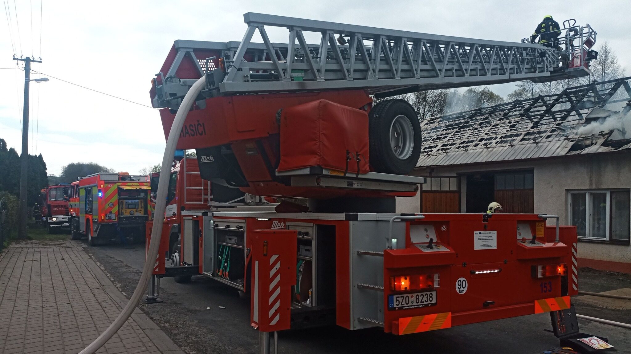 Hasiči likvidovali rozsáhlý požár střechy domu v Halenkovicích