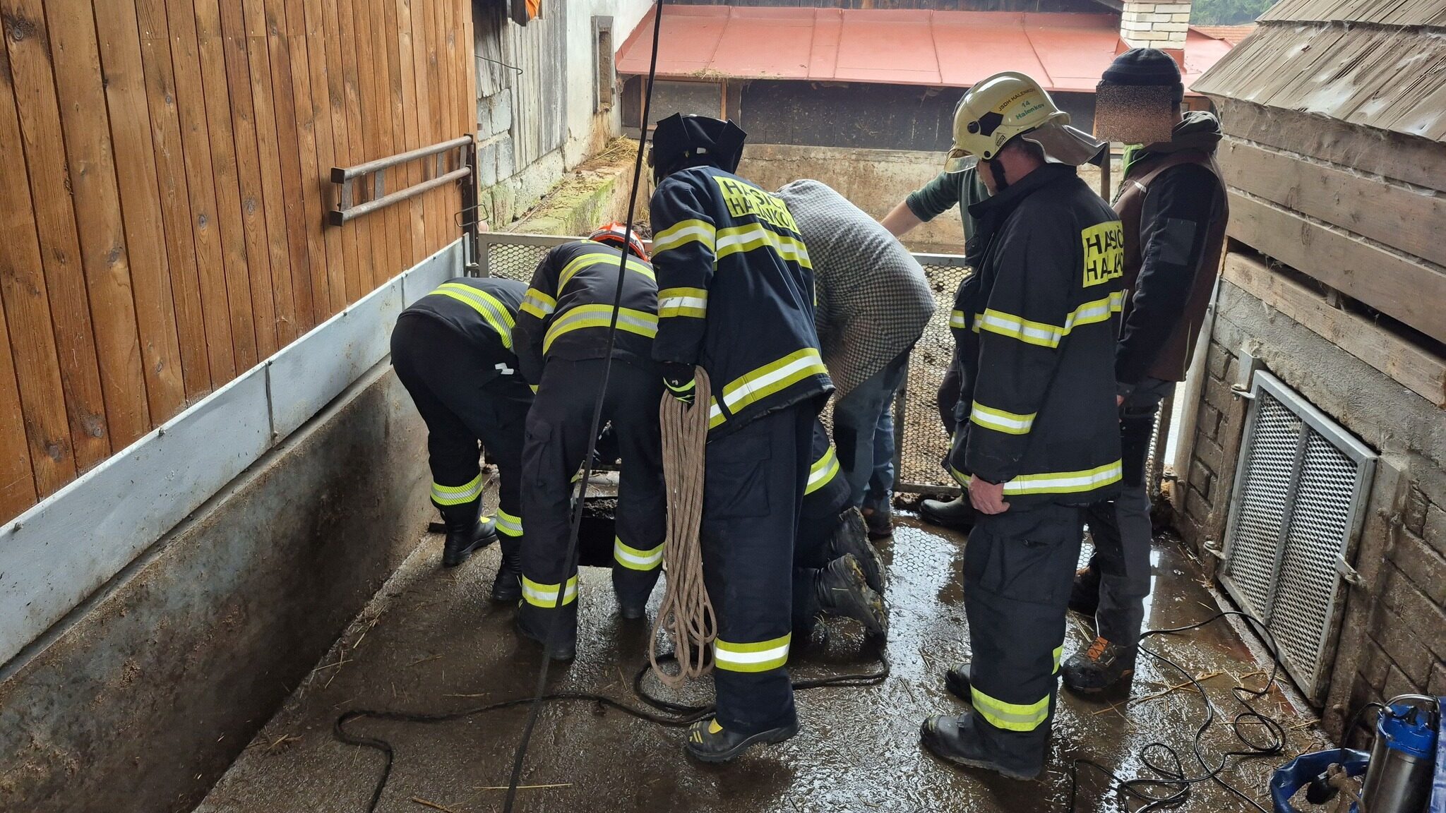 Odpoledne pokračovalo technickými zásahy. V Huslenkách hasiči vyprostili prase, které spadlo do jímky, a bezpečně jej předali majiteli. Do Kroměřížska pak vyjížděli k neobvyklé situaci, kdy museli pomoci muži, kterému se přiskříplo varle do plastové židle. Po pečlivém vyproštění jej předali do péče zdravotníků.