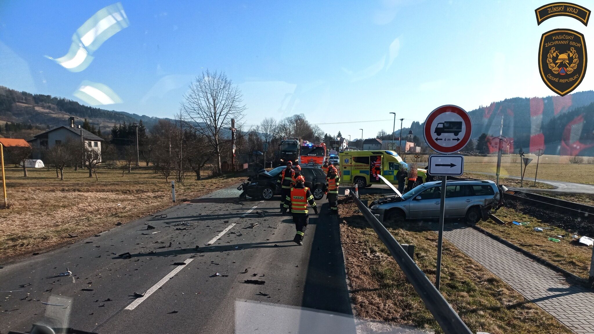 Během pátečního rána došlo k čtyřem dopravním nehodám, ke kterým vyjížděli hasiči. Nejvážnější byla srážka dvou aut v Halenkově, při které se zranili čtyři lidé. Kvůli blízkosti železniční trati byla omezena rychlost vlaků.
