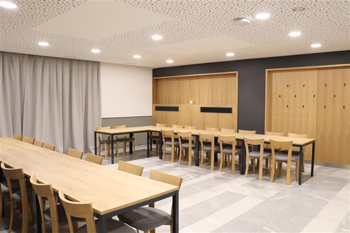 Během rekonstrukce se změnila celková dispozice přísálí. Původní boxy se sedačkami a staré obložení nahradily věšákové stěny a prostor dostal novou vzdušnou koncepci zasedacího uspořádání, kterému odpovídá i vhodný nábytek. Namísto původních podhledů je dnes snížený strop se vzduchotechnikou včetně rekuperace.