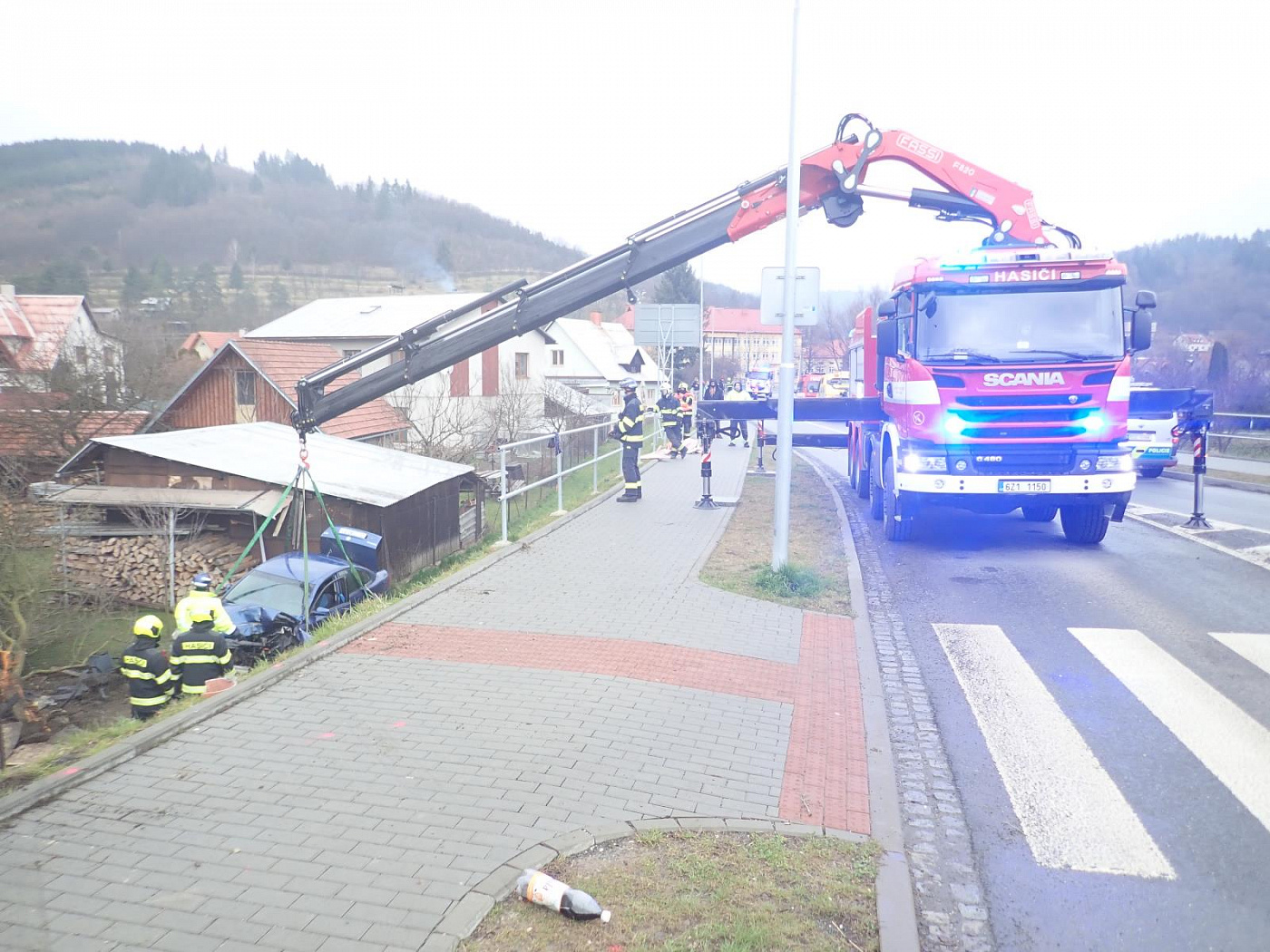 K vážně vypadající nehodě, která se stala v obci Hovězí, byli vysláni 21. března 2020 krátce před půl třetí odpolední profesionální hasiči ze stanice Vsetín a místní jednotka.