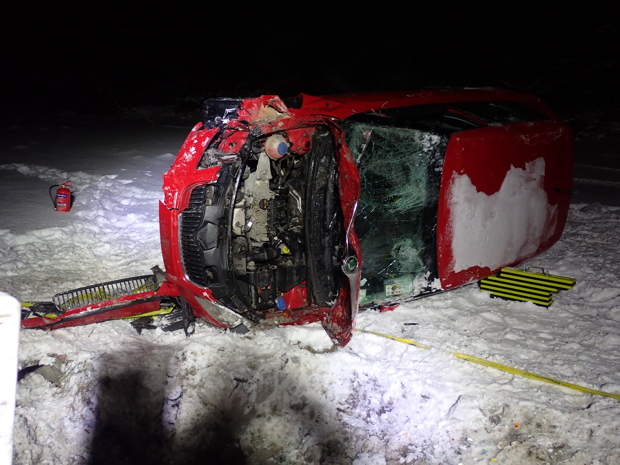 Nehoda automobilu v Bratřejově. Auto skončilo na střeše
