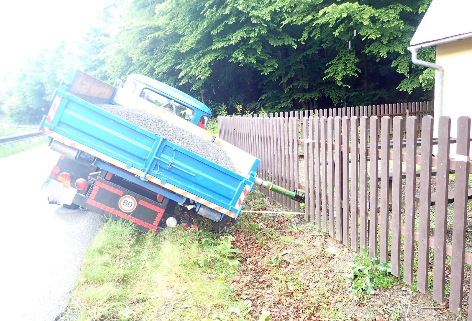 Nehoda nákladního automobilu v Oznici na Vsetínsku