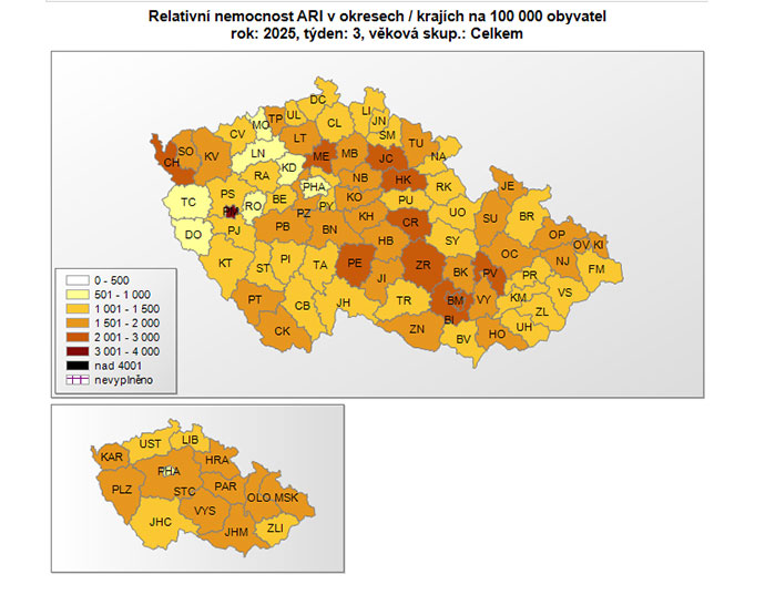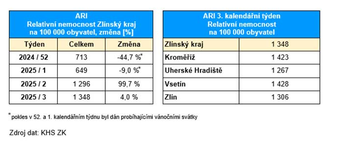 Ve Zlínském kraji bylo ve třetím týdnu roku 2025 zaznamenáno 1 348 nemocných na 100 000 obyvatel. Přestože epidemický práh, který činí přibližně 1 600 nemocných na 100 000 obyvatel, zatím nebyl překročen, odborníci očekávají zhoršení situace.