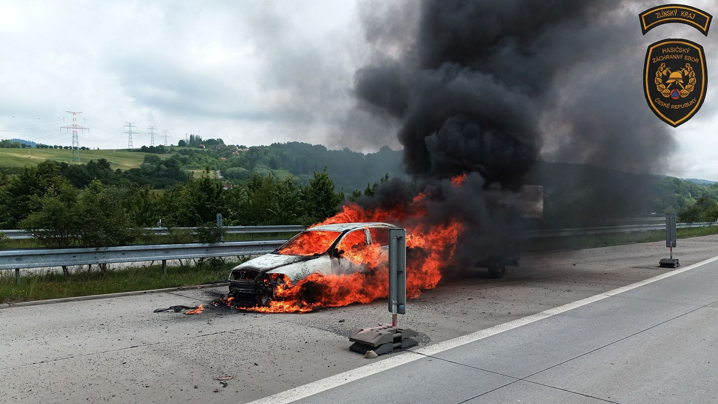 Požár auta u Lhotky nad Bečvou: řidič s přítelkyní stihli utéct včas