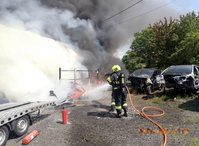 Požár haly v Krhové likvidovalo šest jednotek hasičů