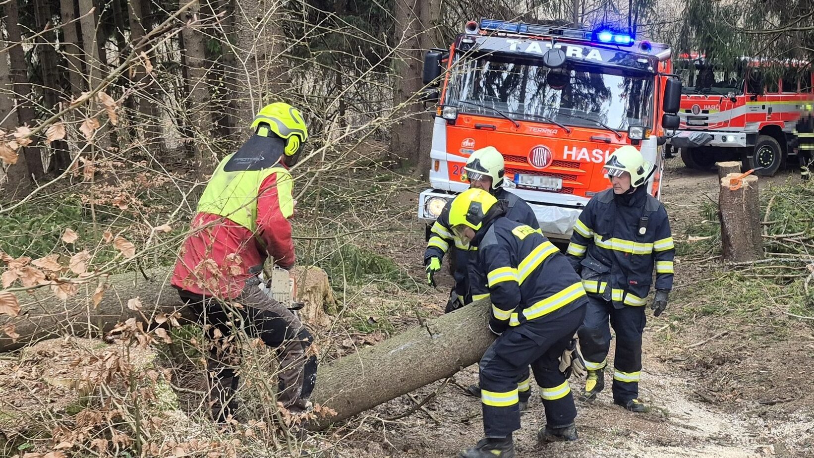 Zásah komplikoval především špatně přístupný terén, ve kterém se těžební stroj nacházel. Aby se hasičská technika vůbec dostala blíže k ohni, bylo nutné odstranit jeden ze stromů a vytvořit průjezd. Ještě před příjezdem cisternových vozů se situaci snažili zvládnout pracovníci na místě a dobrovolní hasiči, kteří nasadili hasicí přístroje a vysokotlaké zařízení z terénního vozidla.