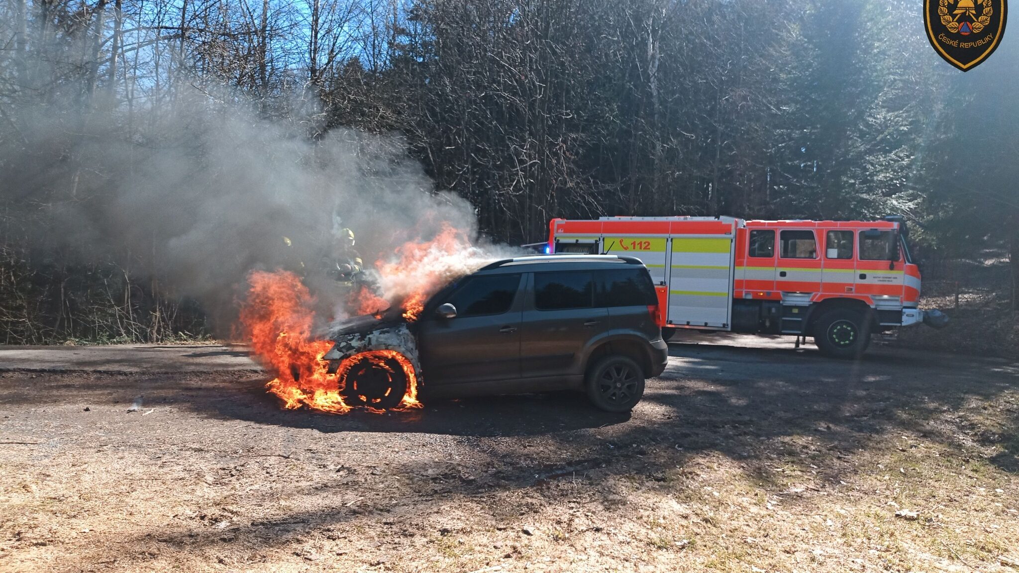 „Automobil Škoda Yeti zde majitel zaparkoval nedaleko lesa a odešel. O chvíli později zjistil, že vůz hoří,“ uvedla mluvčí krajských hasičů Lucie Javoříková.
