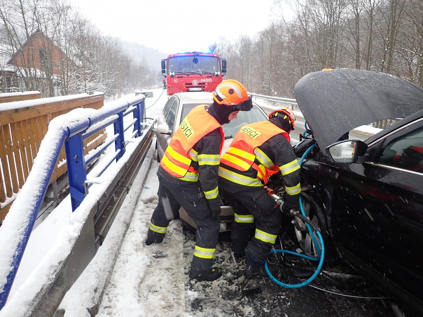 Předlékařskou péči poskytovali hasiči osobám po nehodě u obce Lužná, střetly se dva osobní automobily