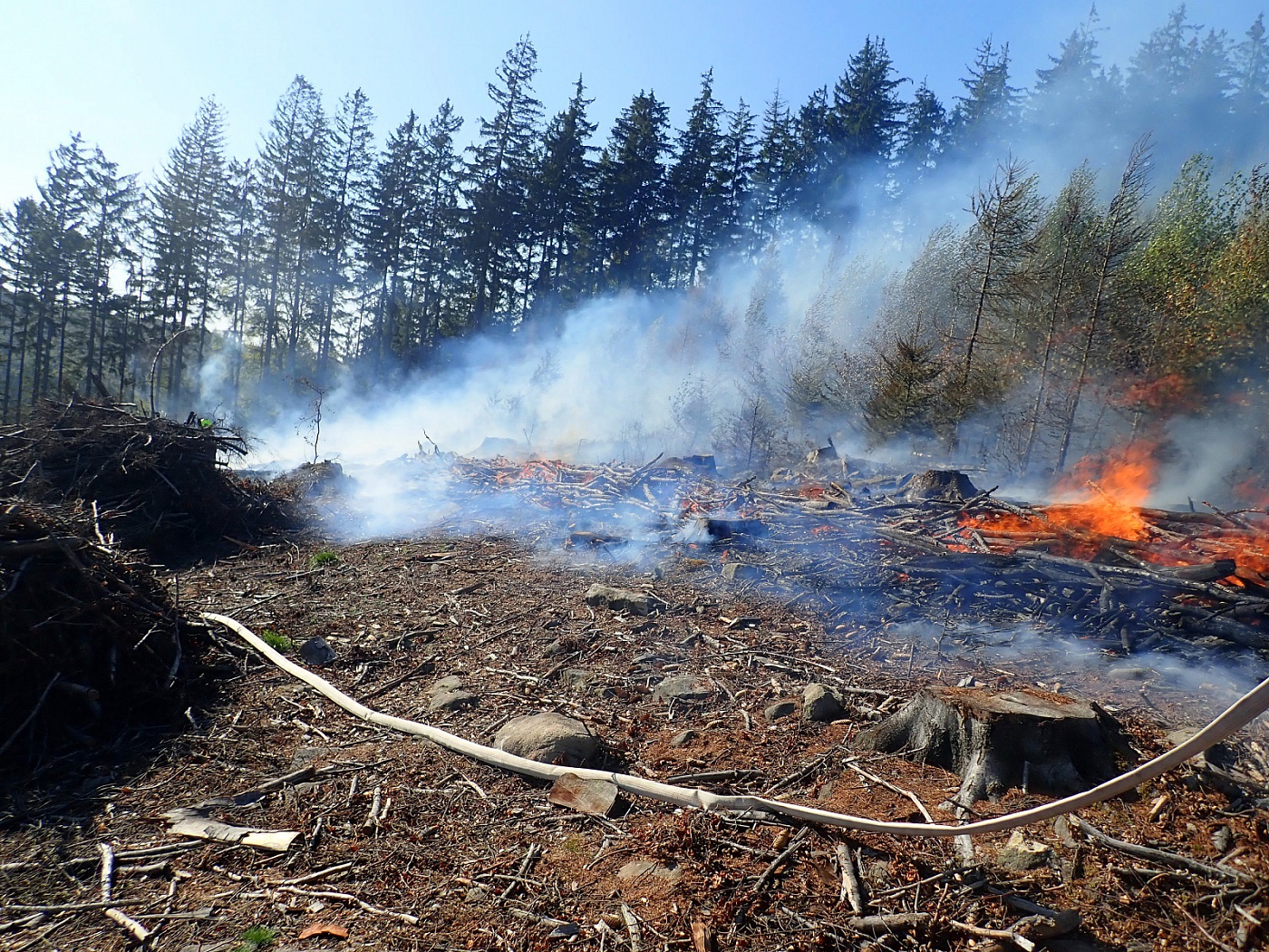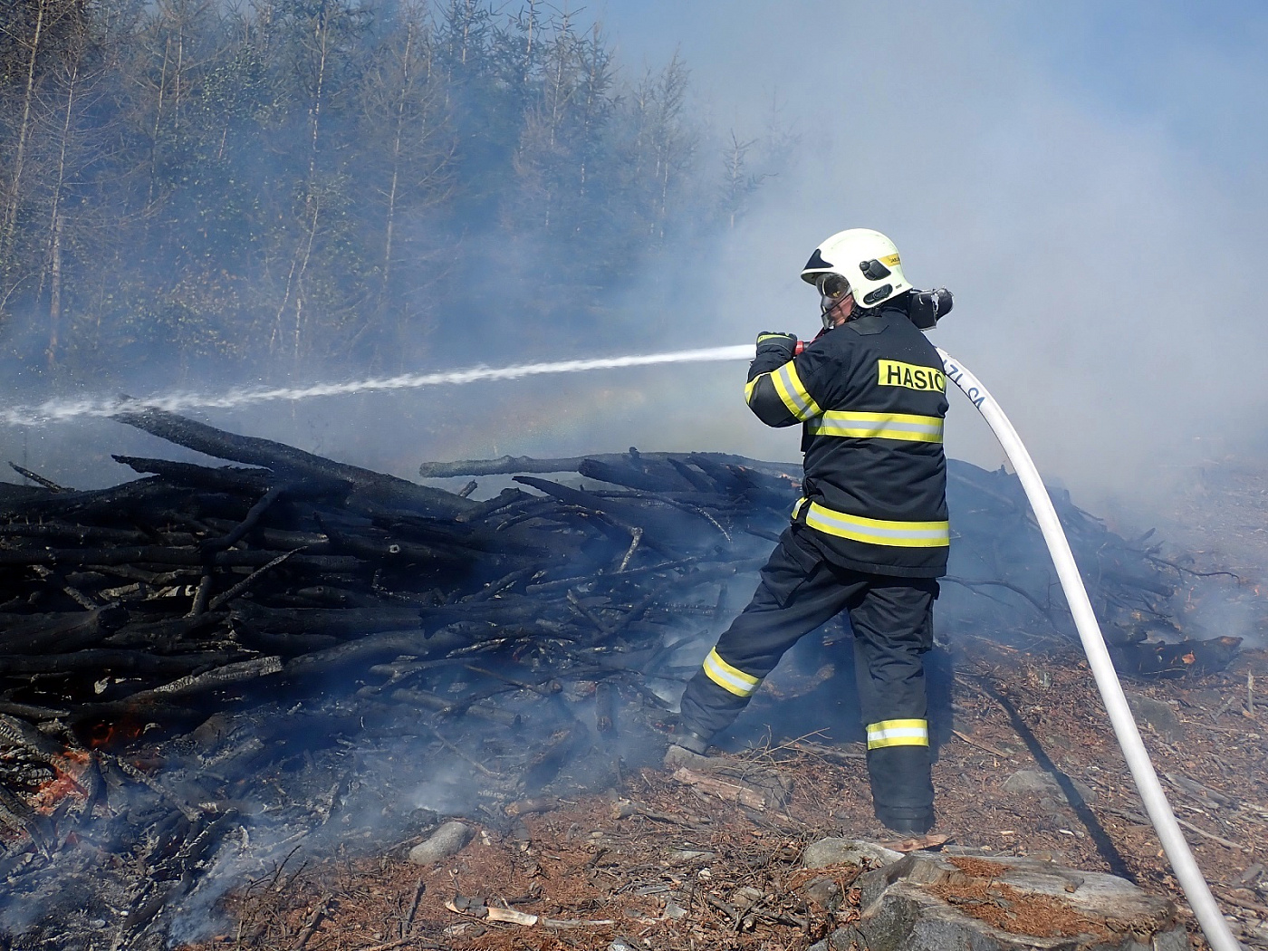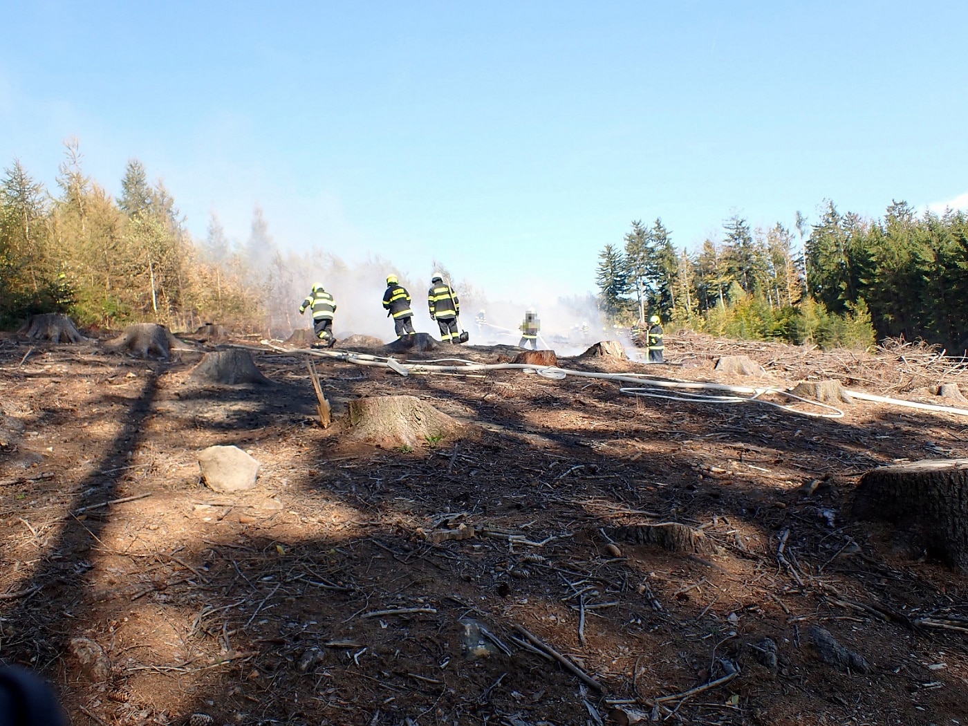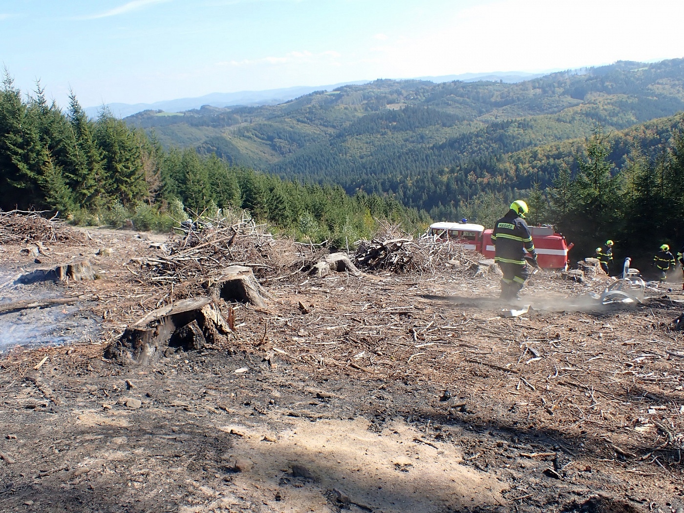 Požár vznikl v těžkém lesním terénu, kam se nedostaly všechny cisterny. Některé tak zůstaly na seřadišti a pomocí hadicového vedení byla na místo dopravována hasební voda. Několika útočnými proudy a jednoduchými hasebními prostředky byl požár asi po dvou hodinách zásahu lokalizován. Celková likvidace byla velitelem ohlášena v 16:45 hodin. Místo bylo následně předáno odpovědné osobě, která bude na požářiště dohlížet.