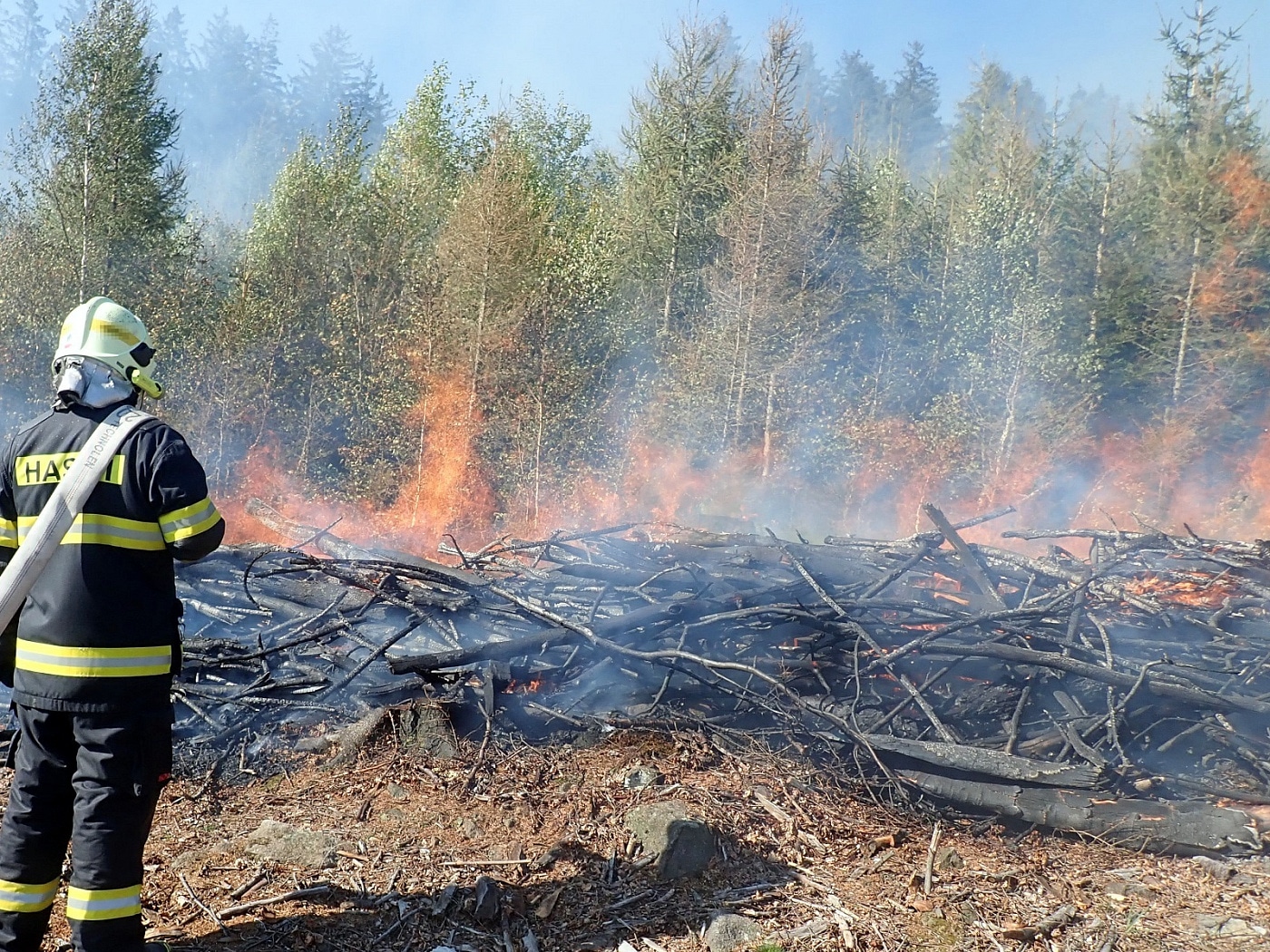 Při likvidaci požáru rubaniska v Ratiboři byl vyhlášen druhý stupeň poplachu