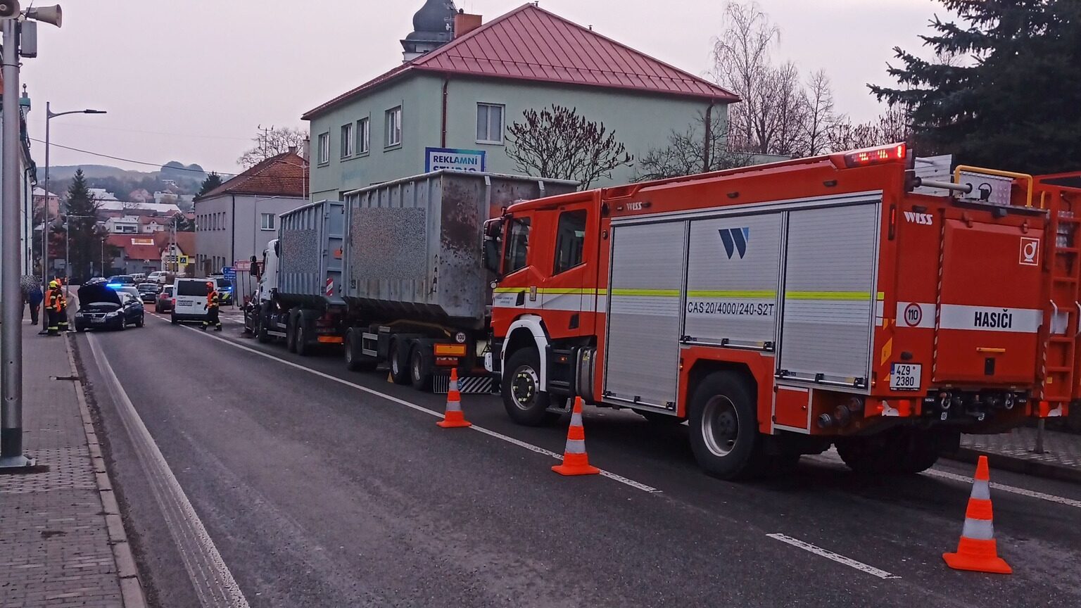 Hasiči ihned po příjezdu zabezpečili místo nehody a provedli protipožární opatření. „Po nárazu došlo k většímu úniku provozních kapalin, které tekly po cestě z mírného kopce směrem ke kanalizační vpusti. Proto hasiči vše řádně zasypali sorbentem a zamezili dalšímu úniku, aby se kapaliny nedostaly do kanalizace. Jakmile to situace dovolila, hasiči jeden osobák odtáhli mimo cestu. Pro druhý si přijela odtahová služba,“ uvedla mluvčí hasičů Lucie Javoříková.