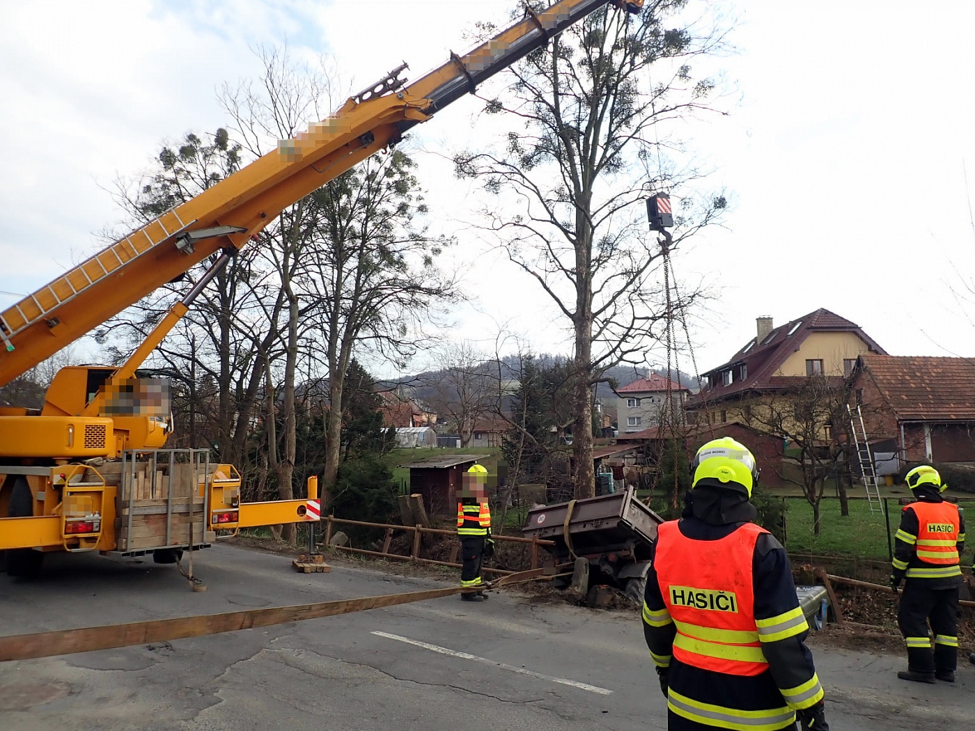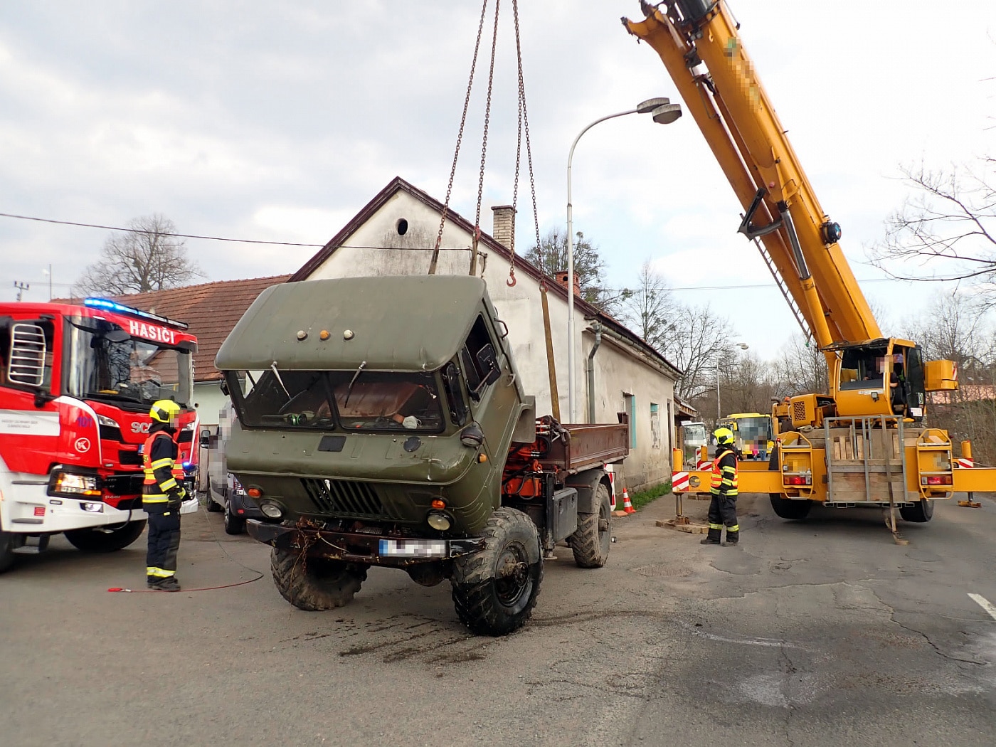 Po příjezdu jeřábu, který si zajistil majitel vozu, provedly jednotky asistenci při vytažení stroje z koryta zpět na komunikaci. Po přibližně dvou hodinách zásahu se hasiči vrátili zpět na své základny.