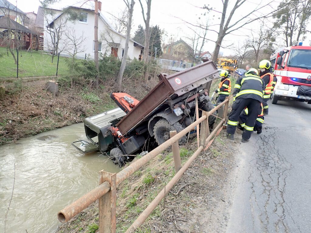 Po provedení prvotního průzkumu bylo na místě zjištěno, že zde špatně zabrzděný nákladní automobil sjel do koryta místního potoka. Nikdo naštěstí nebyl zraněn. Hasiči okamžitě zabezpečili místo události a provedli záchyt provozních kapalin, aby nedošlo k jejich úniku do vodoteče.