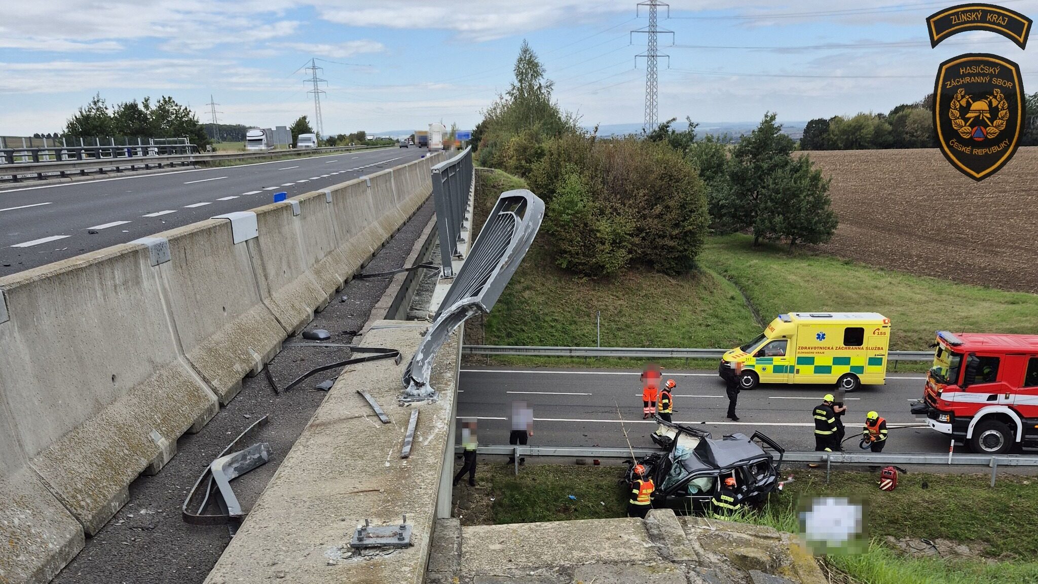 Na dálnici D1 u Bezměrova došlo ke střetu osobního a nákladního auta. Osobní vůz spadl z mostu, řidiče se přes veškerou snahu hasičů nepodařilo zachránit.