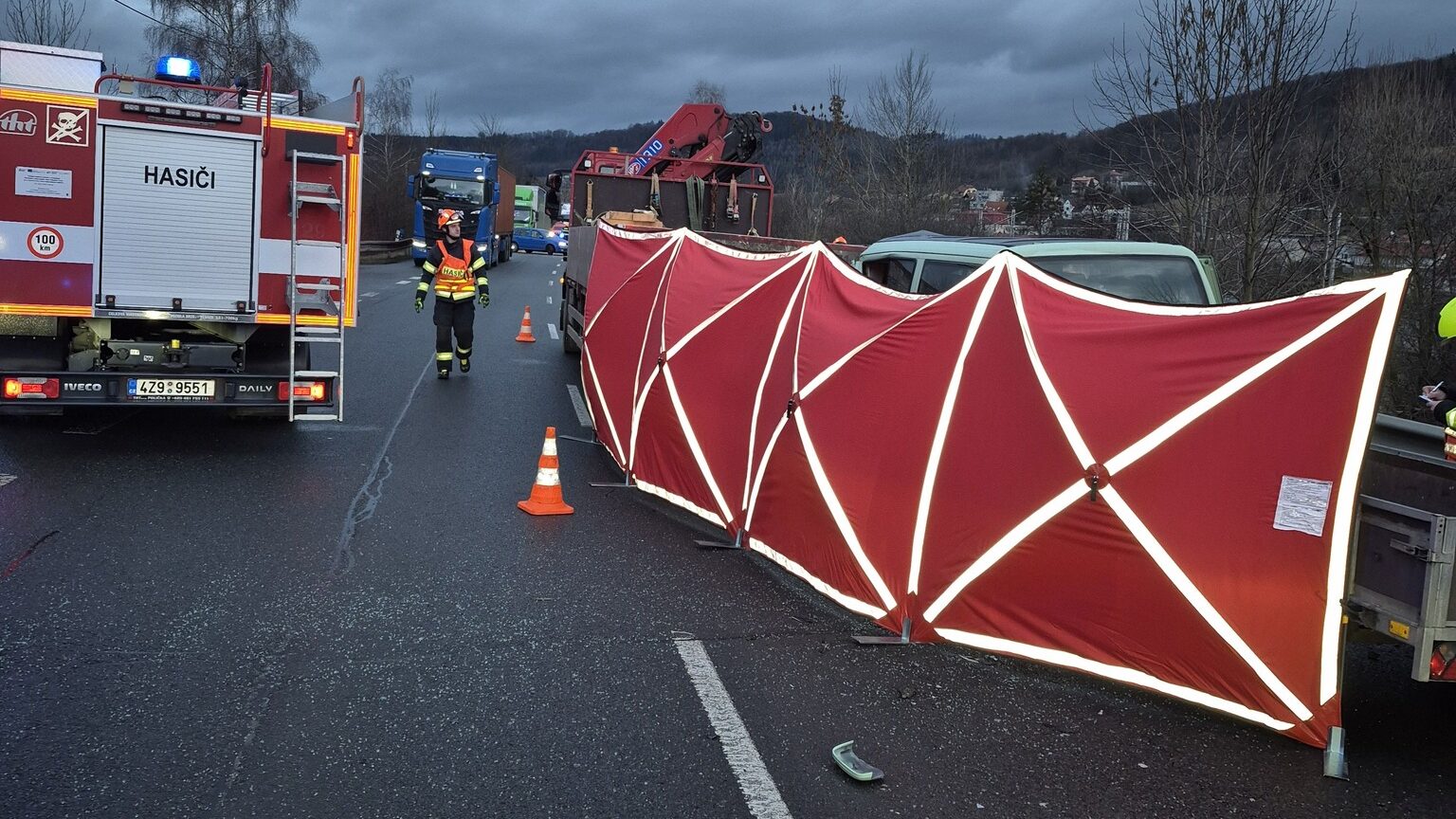 Páteční svítání na Vsetíně přerušila vážná nehoda dvou nákladních vozidel. Jeden z řidičů svým zraněním podlehl, další lidé skončili v péči záchranářů. Hlavní tah zůstal dlouhé hodiny omezen.