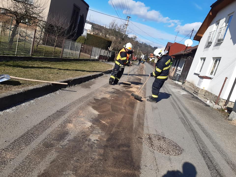 Únik nebezpečné kapaliny na komunikaci v Jablůnce