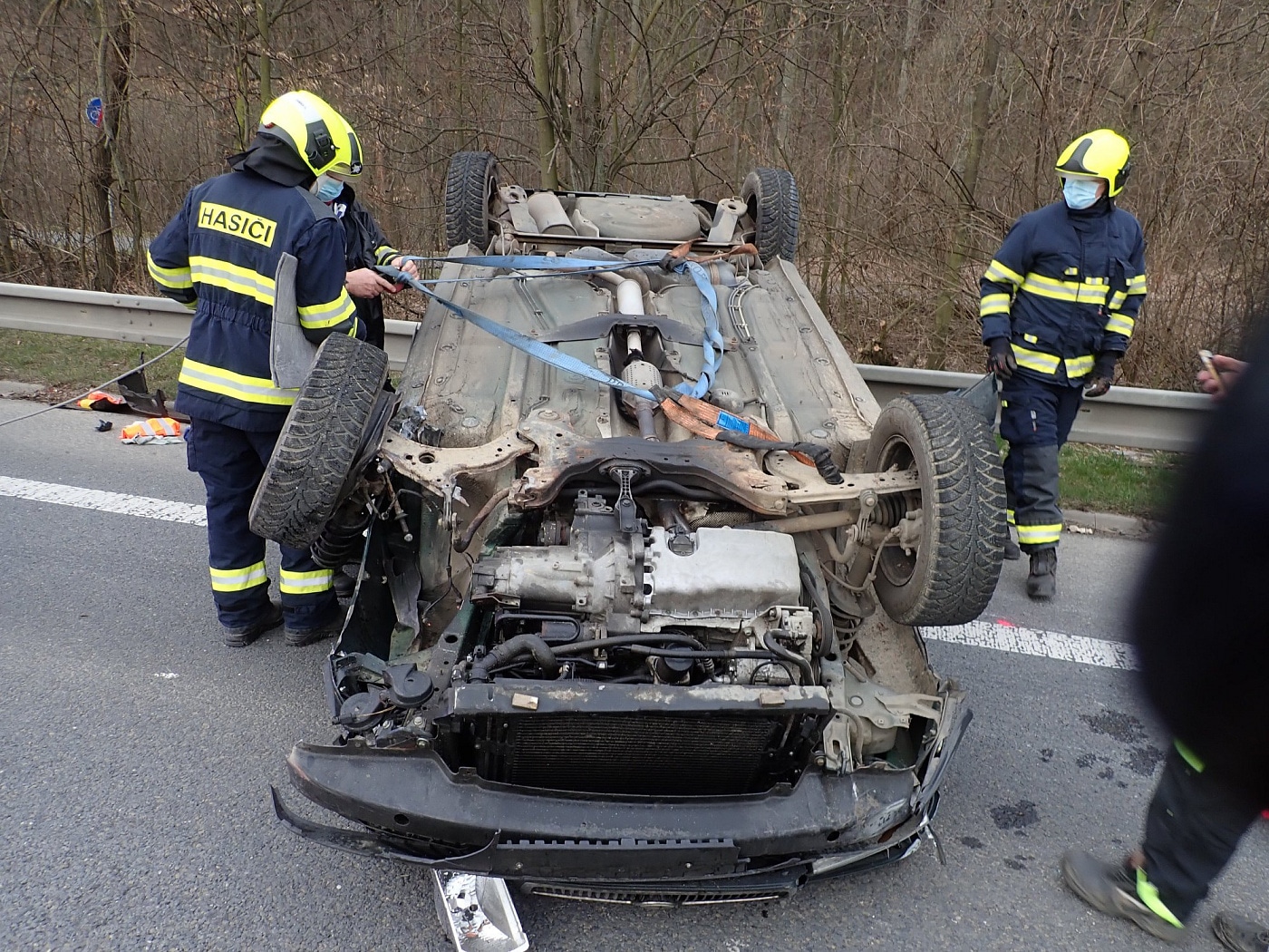 V místní části Bobrky u Vsetína skončilo auto na střeše