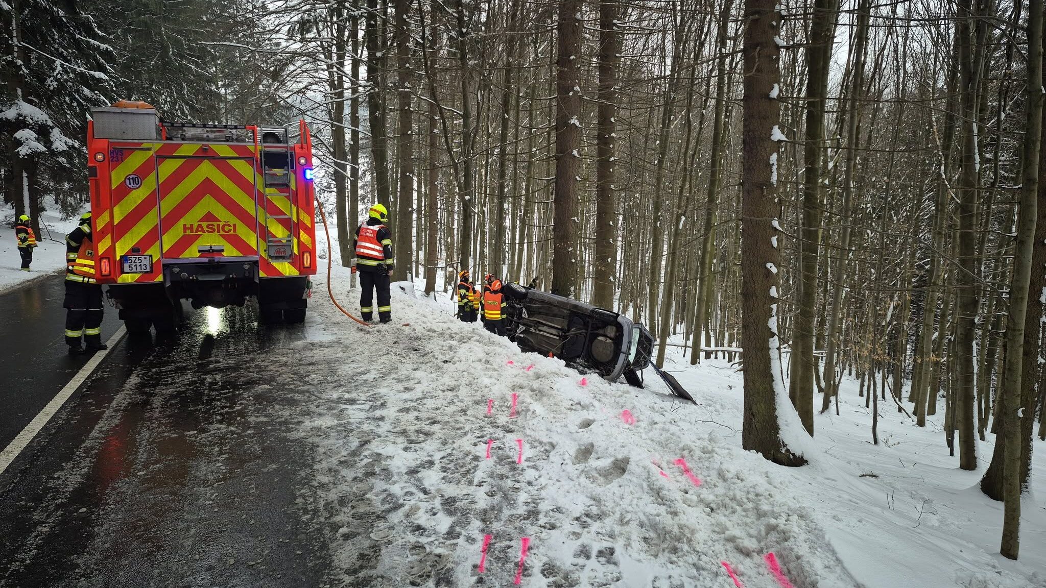 Odpoledne pak vyjížděli dobrovolní hasiči z Karolinky do Velkých Karlovic. Řidič osobního auta zde narazil do sloupu veřejného osvětlení. Muž vyvázl bez zranění, přesto mu hasiči pomohli bezpečně opustit vozidlo a postarali se o zajištění místa nehody. Poškozený sloup následně označili a prostor kolem něj zabezpečili páskou, aby nedošlo k dalším komplikacím.