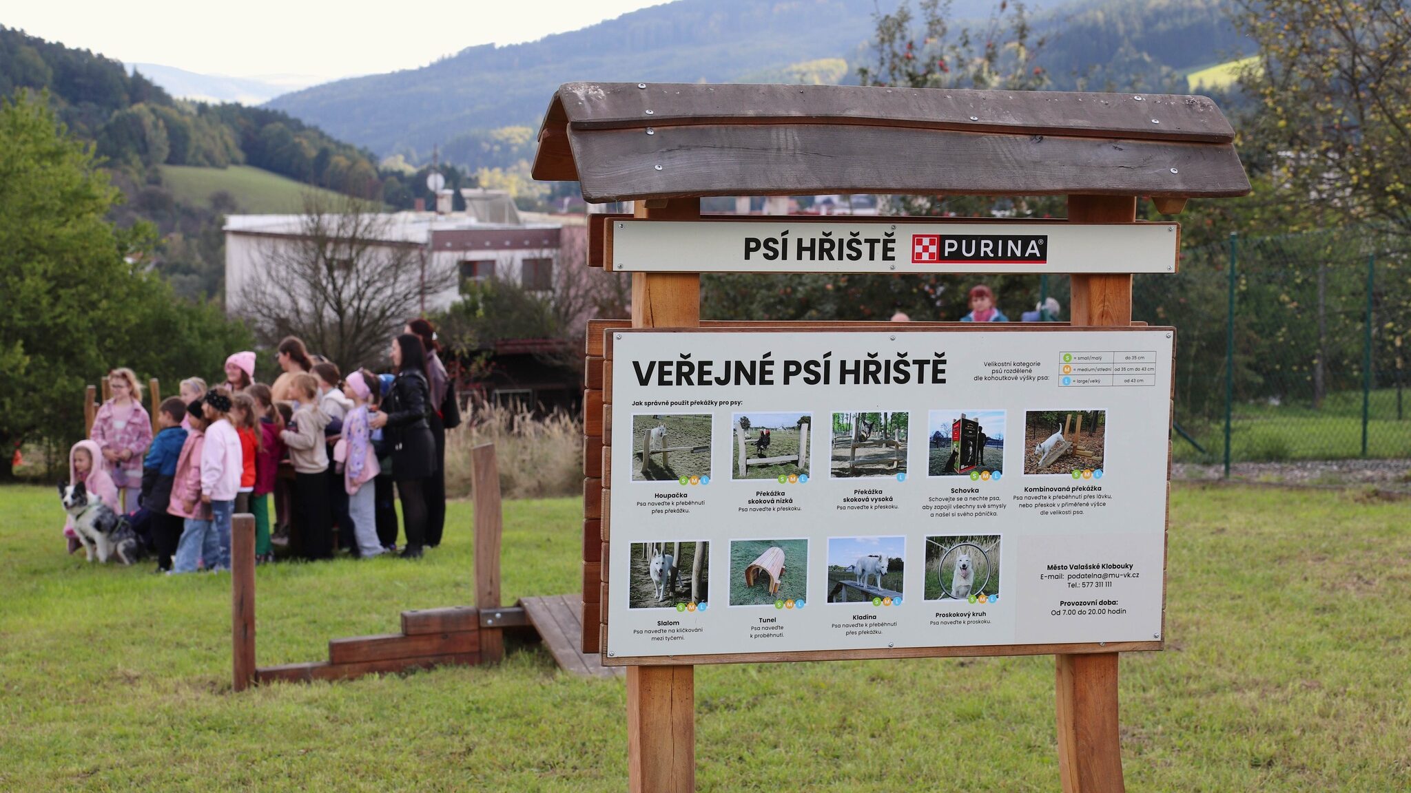 Na sídlišti Luční ve Valašských Kloboukách vzniklo nové psí hřiště. Nabízí překážky, lavičku i prostor pro volný pohyb. Otevření doprovodila kynologická ukázka vedená Magdou Šarounovou.