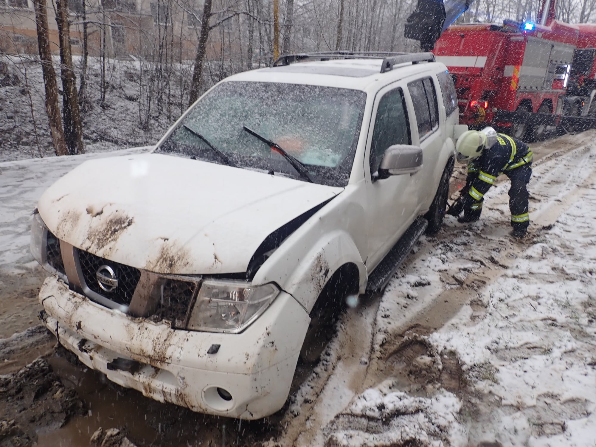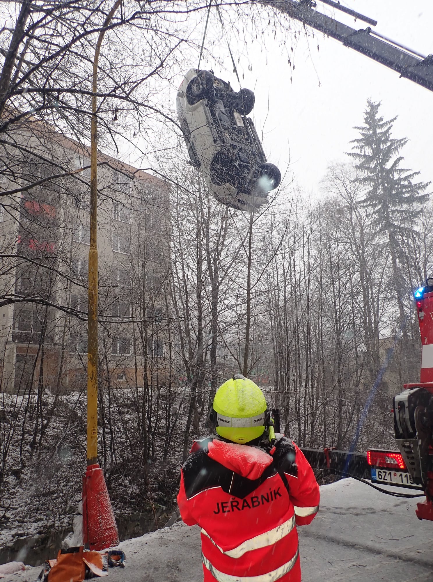 Hasiči do vody dali norné stěny, kdyby při manipulaci s vozidlem došlo k úniku provozních kapalin a odpojili autobaterii. Velitel zásahu si k vytažení vozidla povolal vyprošťovací automobil ze stanice Otrokovice. Pomocí něho poté vozidlo vytáhli z koryta potoku zpět na silnici. Zásah velmi komplikovalo nepříznivé počasí, které trápilo zasahující hasiče. (hzs)