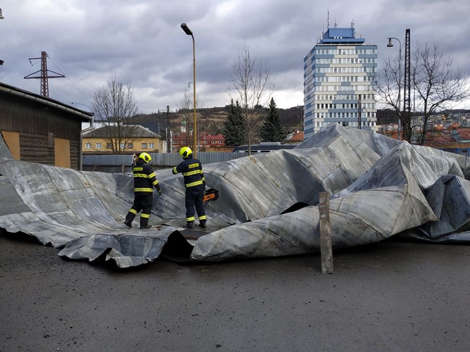 Vítr řádil i v úterý. Ve Vsetíně uvolnil na střeše firmy plechovou krytinu
