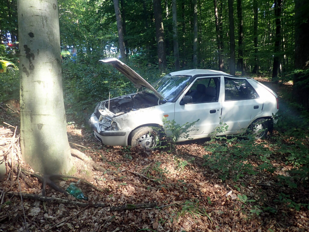 Vůz skončil po nehodě v lese nedaleko obce Štítná nad Vláří-Popov, řidič byl převezen do nemocnice