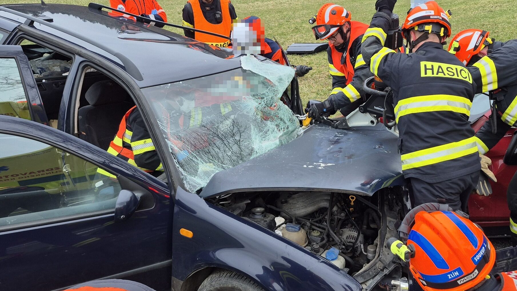 Na místo okamžitě vyrazili profesionální hasiči ze Zlína se dvěma cisternami, které doplnila také jednotka dobrovolných hasičů z Držkové. Po příjezdu zjistili, že v jednom z vozidel utrpěli zranění řidič i spolujezdec. V druhém autě, značky Volkswagen, byl řidič zaklíněný v deformované karoserii a nebylo možné jej dostat ven bez speciální techniky.