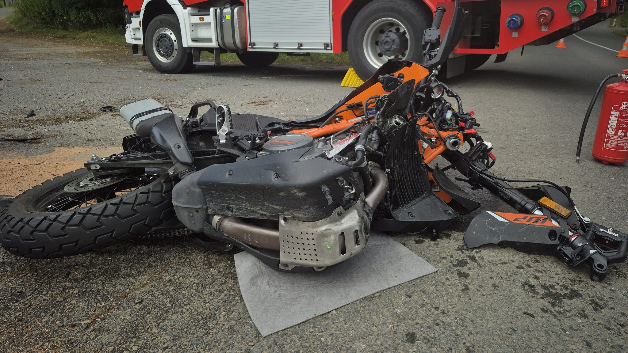 Motorkář se zranil při nehodě v Brankách, silnice byla dočasně uzavřena