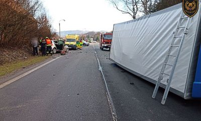 Na dálnici D1 u Bezměrova došlo ke střetu osobního a nákladního auta. Osobní vůz spadl z mostu, řidiče se přes veškerou snahu hasičů nepodařilo zachránit.
