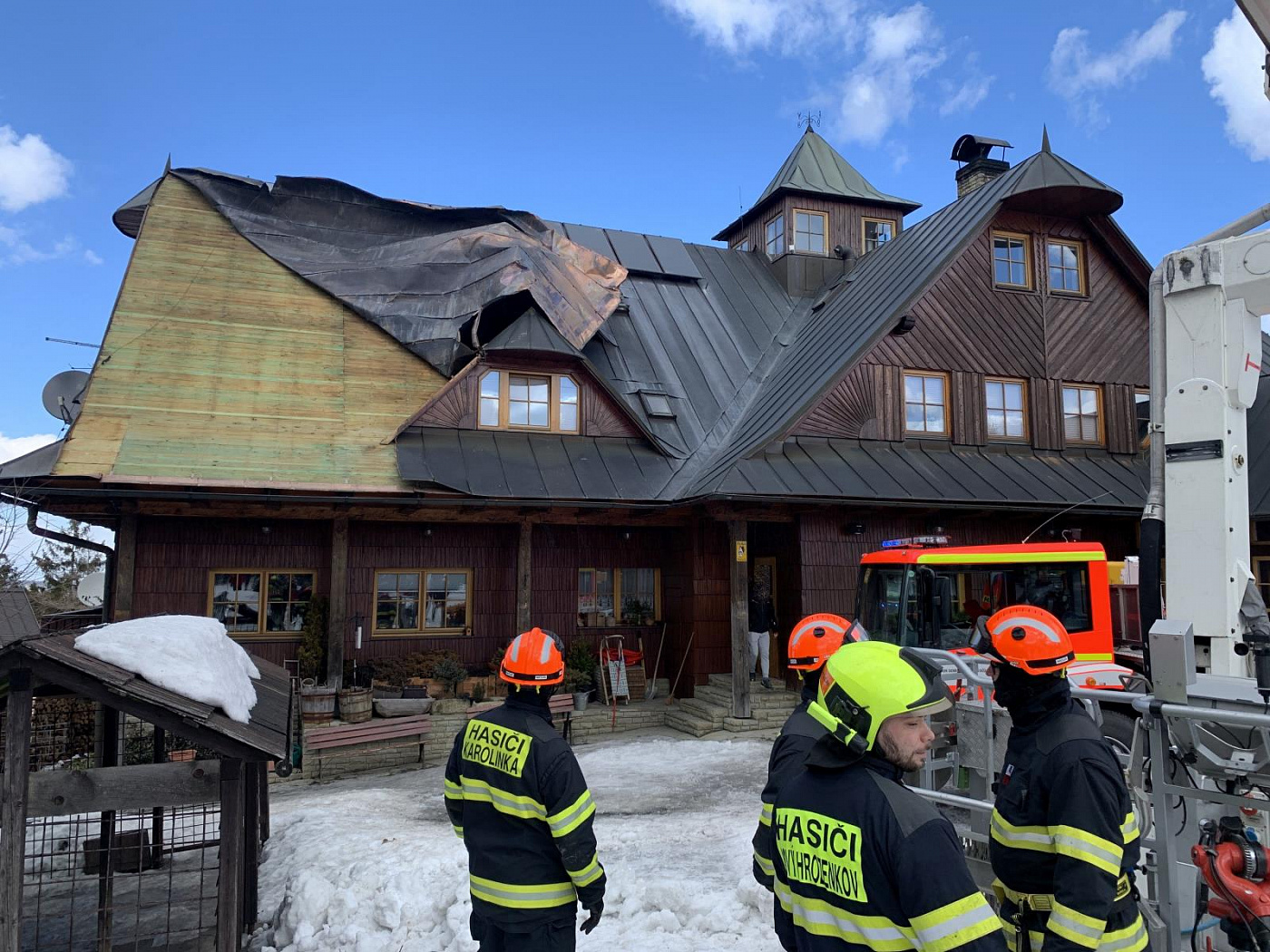 Zásah hasičů na Kohútce patřil k těm komplikovanějším, hasiči zde pracovali od dopoledne až do 17. hodiny. Silný poryv větru zapříčinil poškození plechové střechy hotelu. Hasiči za pomoci...