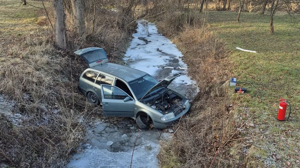 Dramatická nehoda ve Valašské Bystřici skončila autem v potoce. Řidič zůstal uvnitř vozu a museli ho vyprostit hasiči. Na místě zasahovalo několik jednotek i záchranáři.