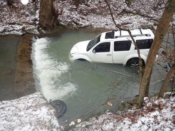 V Novém Hrozenkově sjelo osobní auto do vodního toku. Hasiči ze Vsetína a dobrovolníci z Karolinky zajistili místo, odpojili baterii a do potoka položili sorpčního hada....