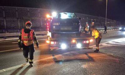 Na dálnici D1 u Bezměrova došlo ke střetu osobního a nákladního auta. Osobní vůz spadl z mostu, řidiče se přes veškerou snahu hasičů nepodařilo zachránit.