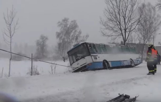 V Újezdu na Zlínsku na silnici třetí třídy sjel autobus do příkopu, když objížděl kamion. Při nehodě se naštěstí nikomu ze sedmi cestujících nic nestalo. Okolnosti...