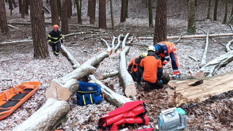 Hasiči a letečtí záchranáři společně zachraňovali dřevorubce v lese u Vizovic. Zraněný muž byl transportován vrtulníkem z nepřístupného terénu. Tento zásah probíhal za náročných podmínek.