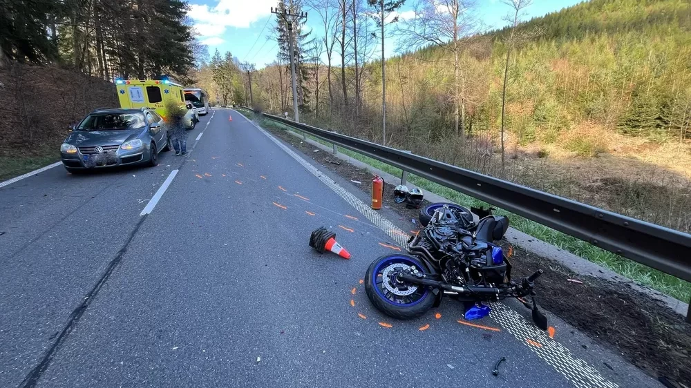Motorkář se srazil s osobním autem mezi Horní Lhotou a Zádveřicemi. Záchranáři ho transportovali do nemocnice s vážným poraněním dolních končetin a pánve. Spolujezdkyně skončila s...