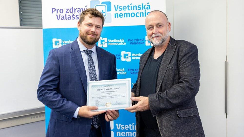Vsetínská nemocnice obhájila prestižní Certifikát kvality a bezpečí, který potvrzuje vysoký standard poskytované péče, úspěšnou modernizaci i velké pokroky v digitalizaci zdravotnictví.